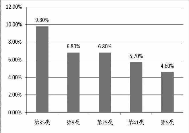 從上圖可以看出,第35類的申請量遠遠高于排名第二的第9類及第25類的申請量,事實勝于雄辯,第35類在全球申請量排名第一,所以作為我們中國企業,對于第35類的保護也一樣要重視起來。
