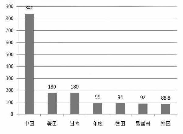 圖7:2014年主要國家每千億美元商標(biāo)申請量?單位:件;